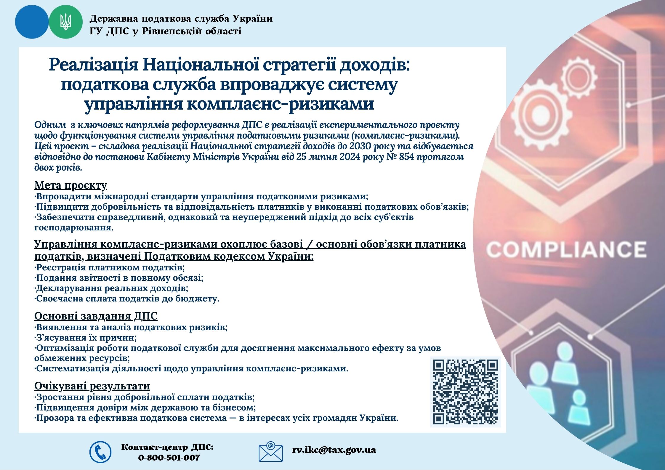 Реалізація Національної стратегії доходів: податкова служба впроваджує систему управління комплаєнс-ризиками