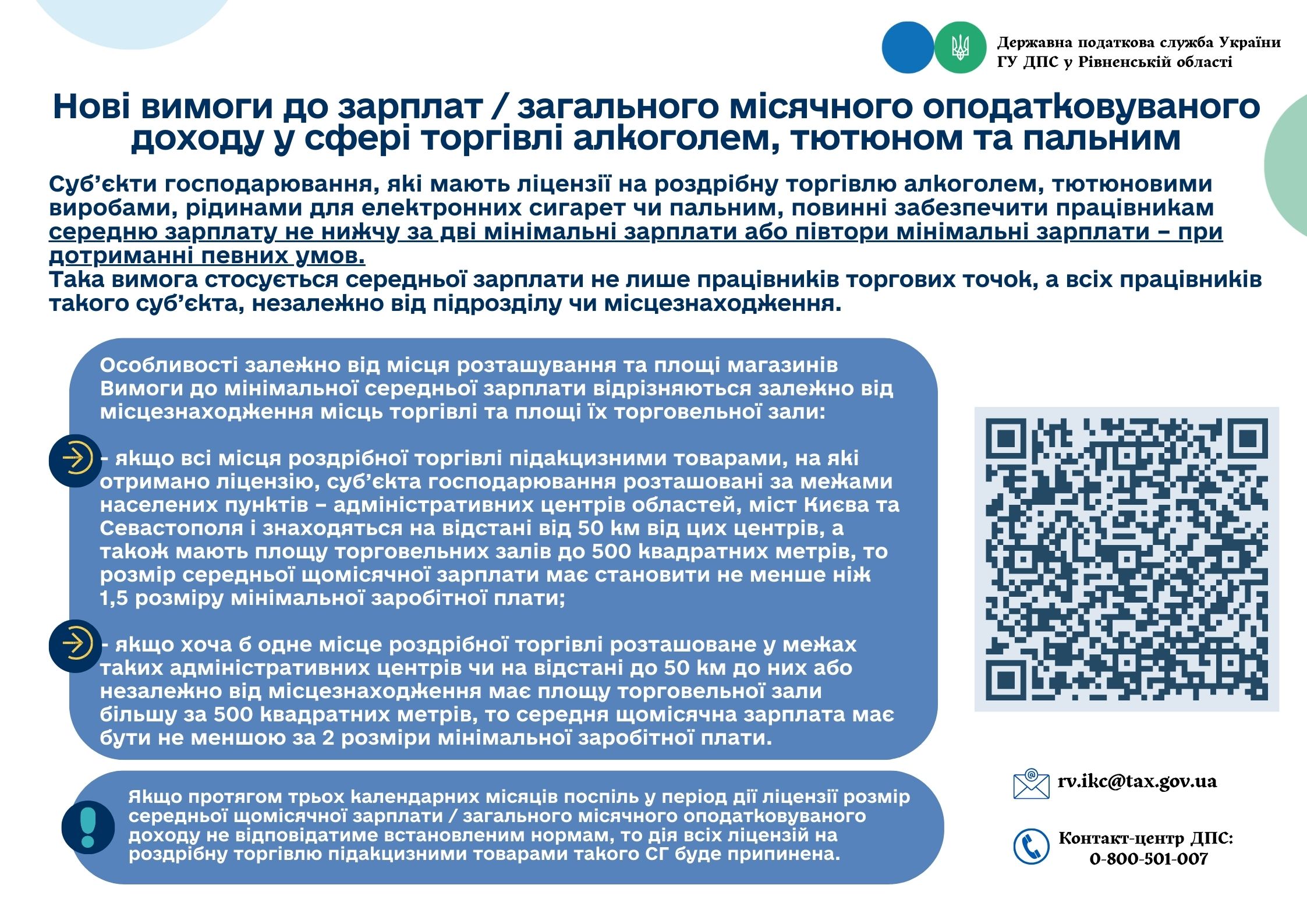 Нові вимоги до зарплат/загального місячного оподатковуваного доходу у сфері торгівлі алкоголем, тютюном та пальним