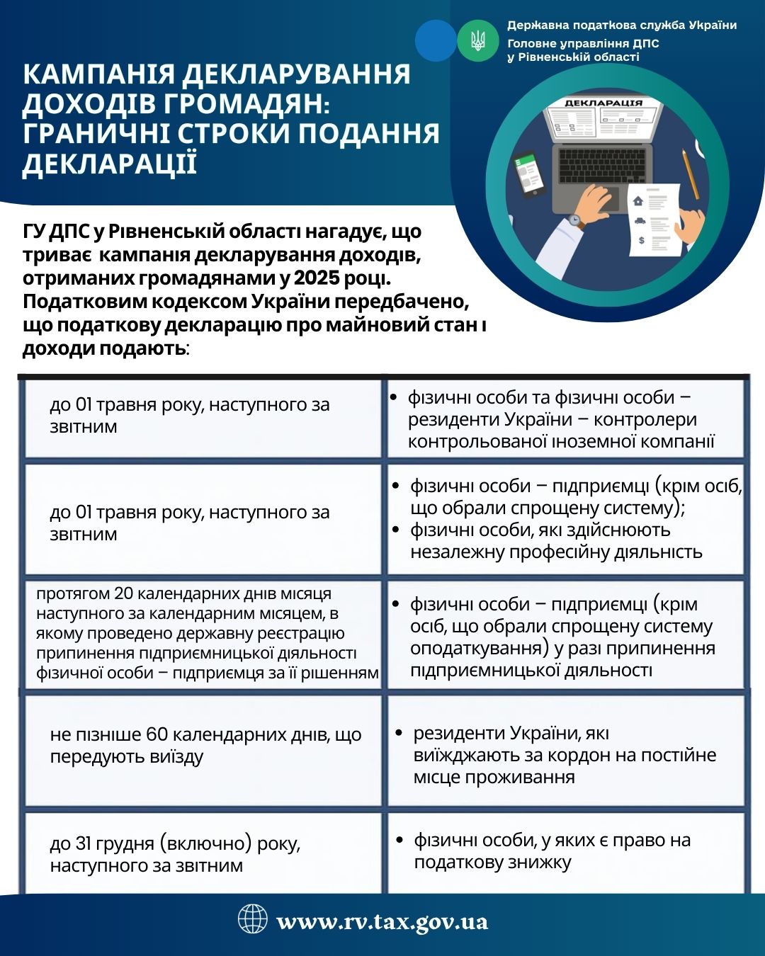 Кампанія декларування доходів громадян: граничні строки подання декларації