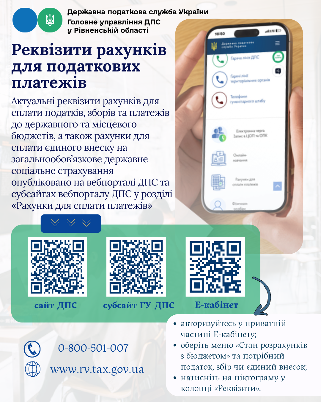Реквізити рахунків для податкових платежів