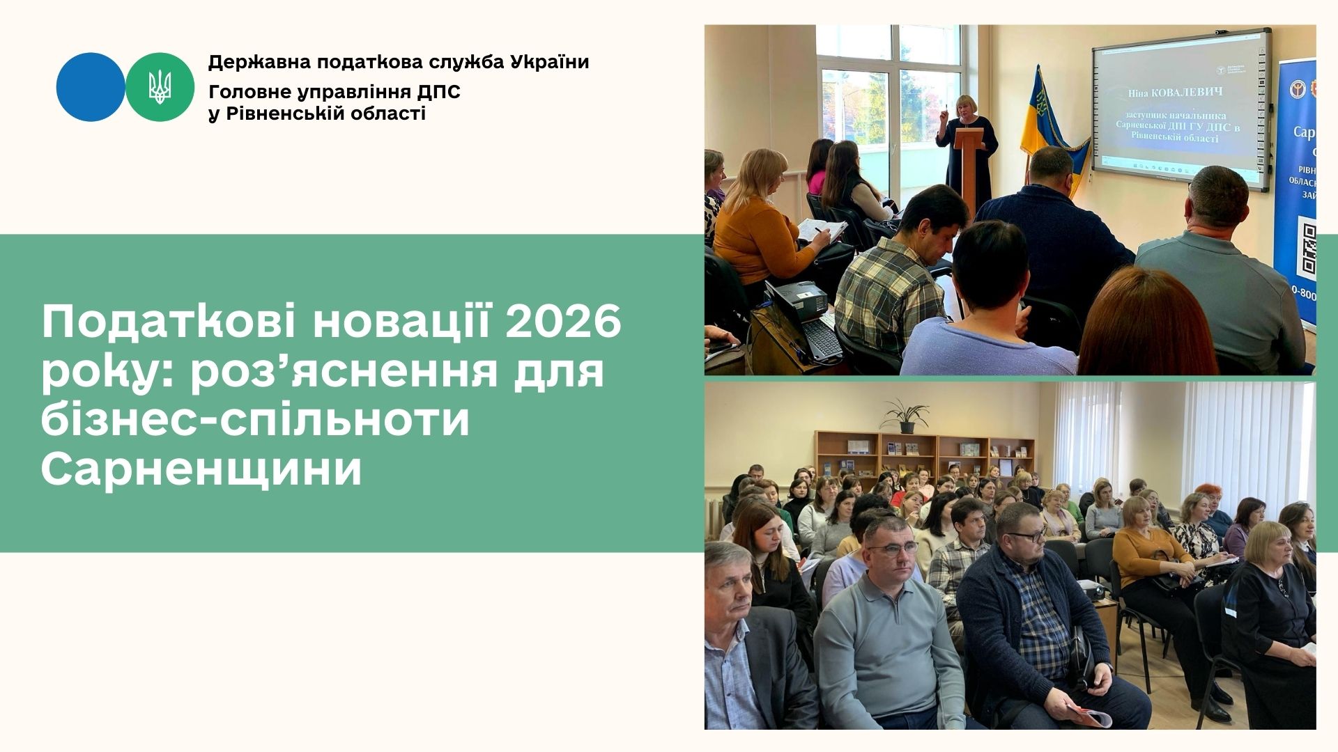 Днями у Сарненській філії Рівненського обласного центру зайнятості відбувся інформаційно-консультаційний семінар для представників бізнес-спільноти на тему: «Актуальні зміни законодавства про зайнятість, соціальний захист осіб з інвалідністю, трудові відносини та останні новації податкової сфери». У заході взяла участь заступник начальника Сарненської ДПІ Головного управління ДПС у Рівненській області Ніна Ковалевич.