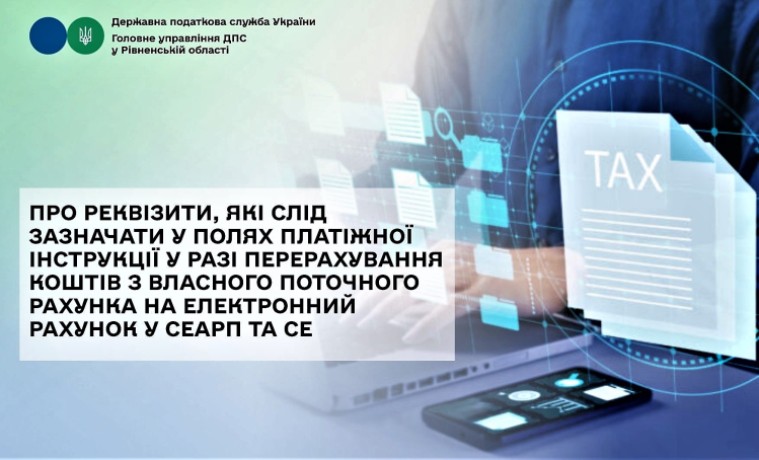 Отже, у разі перерахування коштів з рахунка платника на його електронний рахунок у системі електронного адміністрування реалізації пального та спирту етилового (далі – СЕАРП та СЕ) у платіжній інструкції необхідно заповнювати: