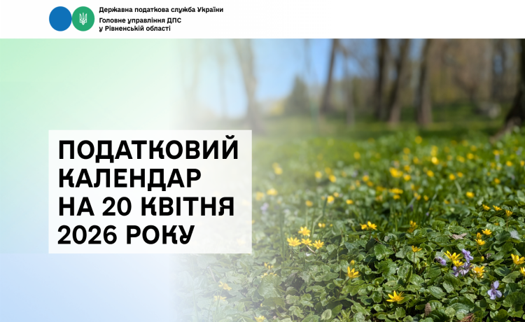 Головне управління ДПС у Рівненській області нагадує про терміни подання звітності та сплати податків. Так, 20 квітня: