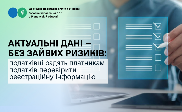 Податкова служба Рівненщини закликає представників бізнесу та фізичних осіб перевірити актуальність своїх реєстраційних даних та, за потреби, своєчасно їх оновити.