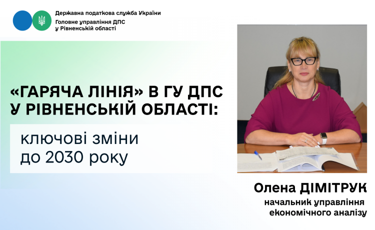 У Головному управлінні ДПС у Рівненській області відбулася «гаряча лінія» на тему: «Основні аспекти Національної стратегії доходів до 2030 року. Реалізація експериментального проєкту щодо функціонування системи управління податковими ризиками (комплаєнс-ризиками) в Державній податковій службі України». На запитання платників відповідала начальник управління економічного аналізу Олена Дімітрук.