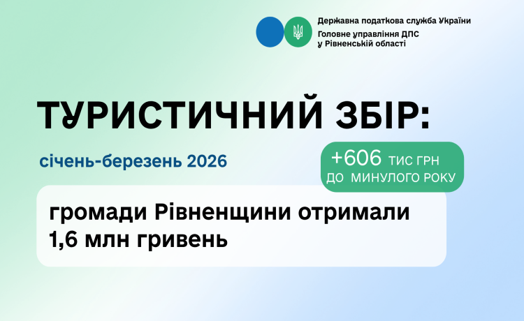 У Рівненській області туристична галузь демонструє позитивну динаміку. Так, у першому кварталі 2026 року до місцевих бюджетів надійшло 1,6 млн грн туристичного збору. Це на 63% більше, ніж за аналогічний період 2025 року, коли було сплачено майже 1 млн гривень.