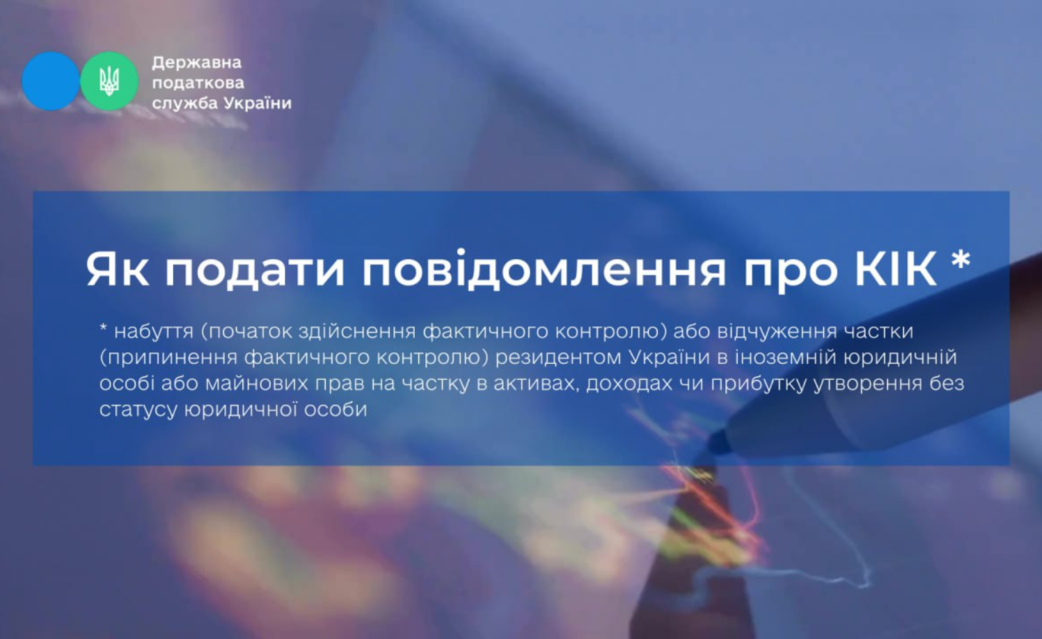 Нагадуємо, що відповідно до підпункту 392.5.5 пункту 392.5 статті 392 Податкового кодексу України, фізична особа - резидент України або юридична особа - резидент України зобов'язана повідомляти контролюючий орган про зміни статусу контролюючих осіб у КІК.