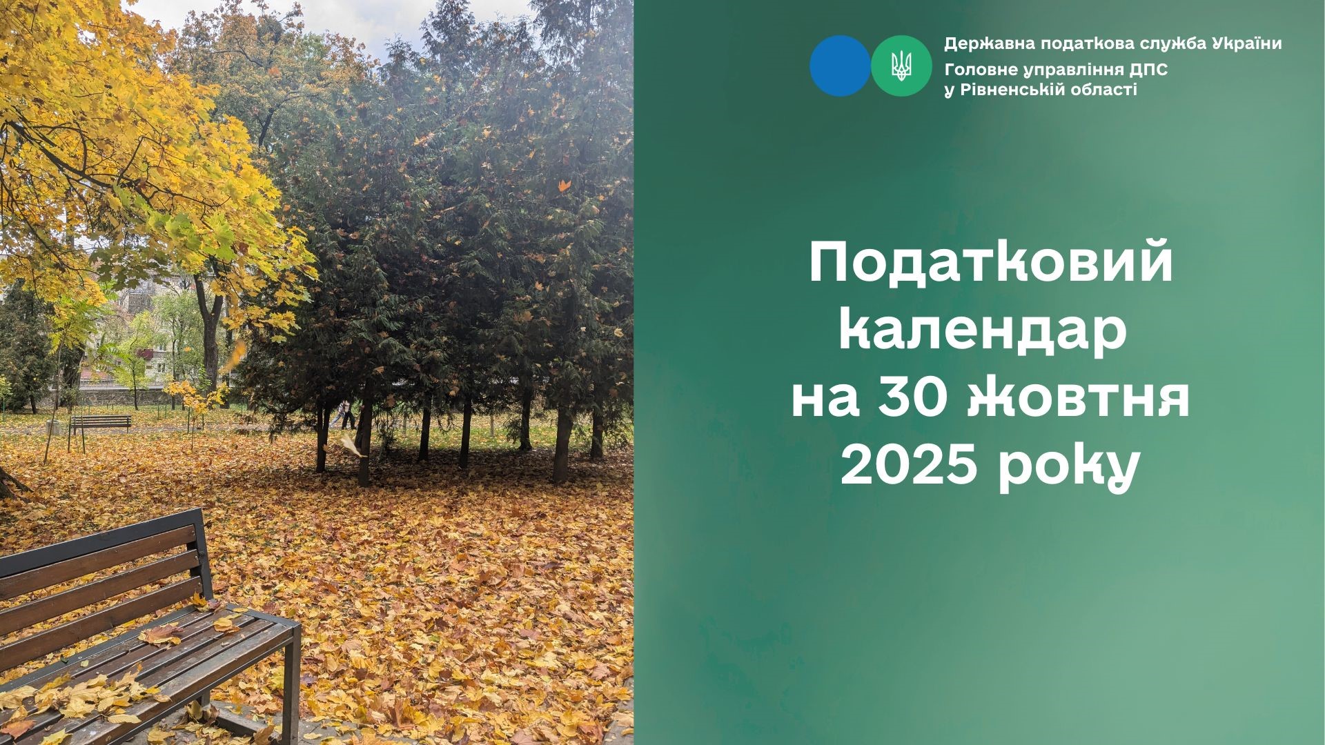 Головне управління ДПС у Рівненській області нагадує про строки сплати податків. Так, 30 жовтня, останній день сплати: