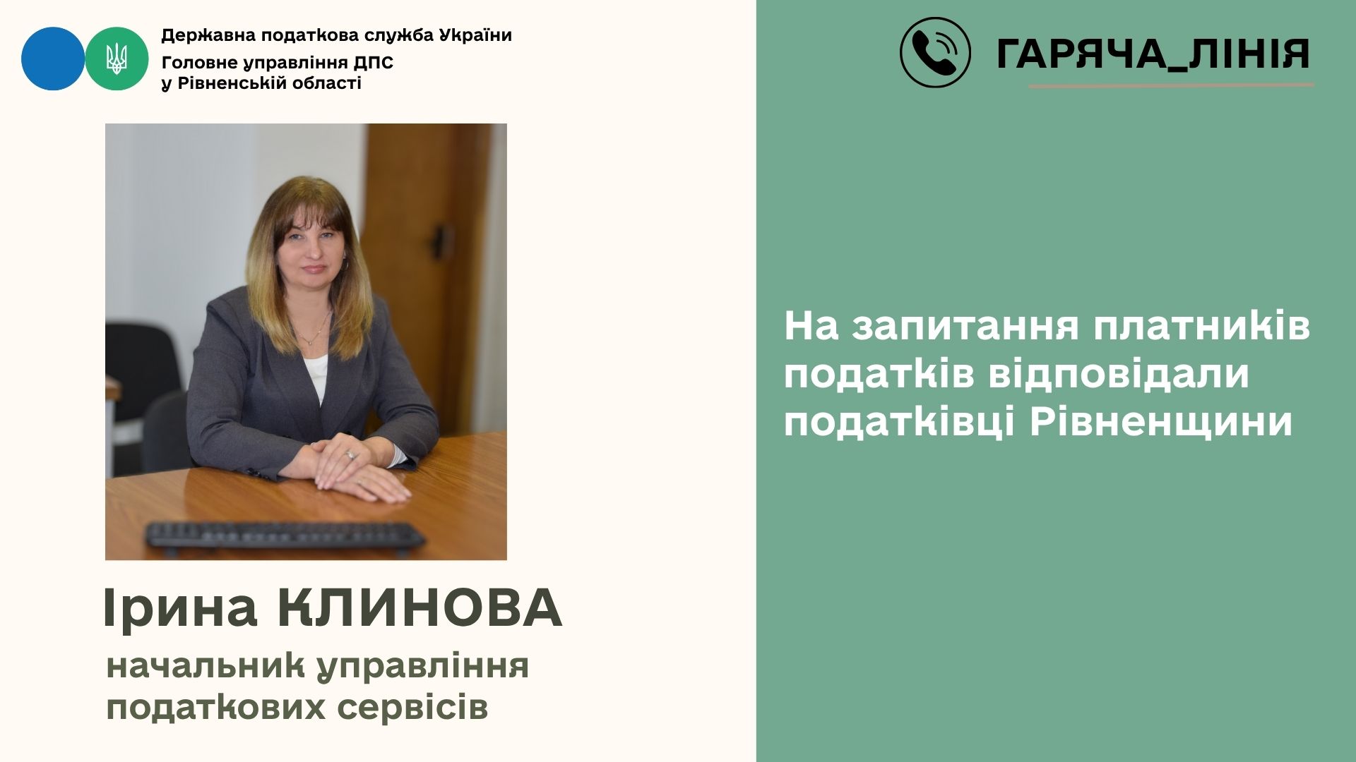 На запитання громадян та представників бізнесу відповідала начальник управління податкових сервісів ГУ ДПС у Рівненській області Ірина Клинова.