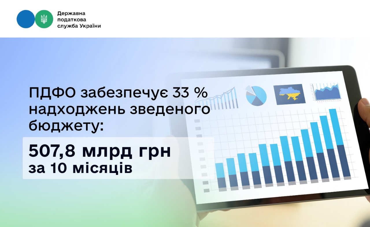 ПДФО забезпечує 33 % надходжень зведеного бюджету: 507,8 млрд грн за 10 місяців