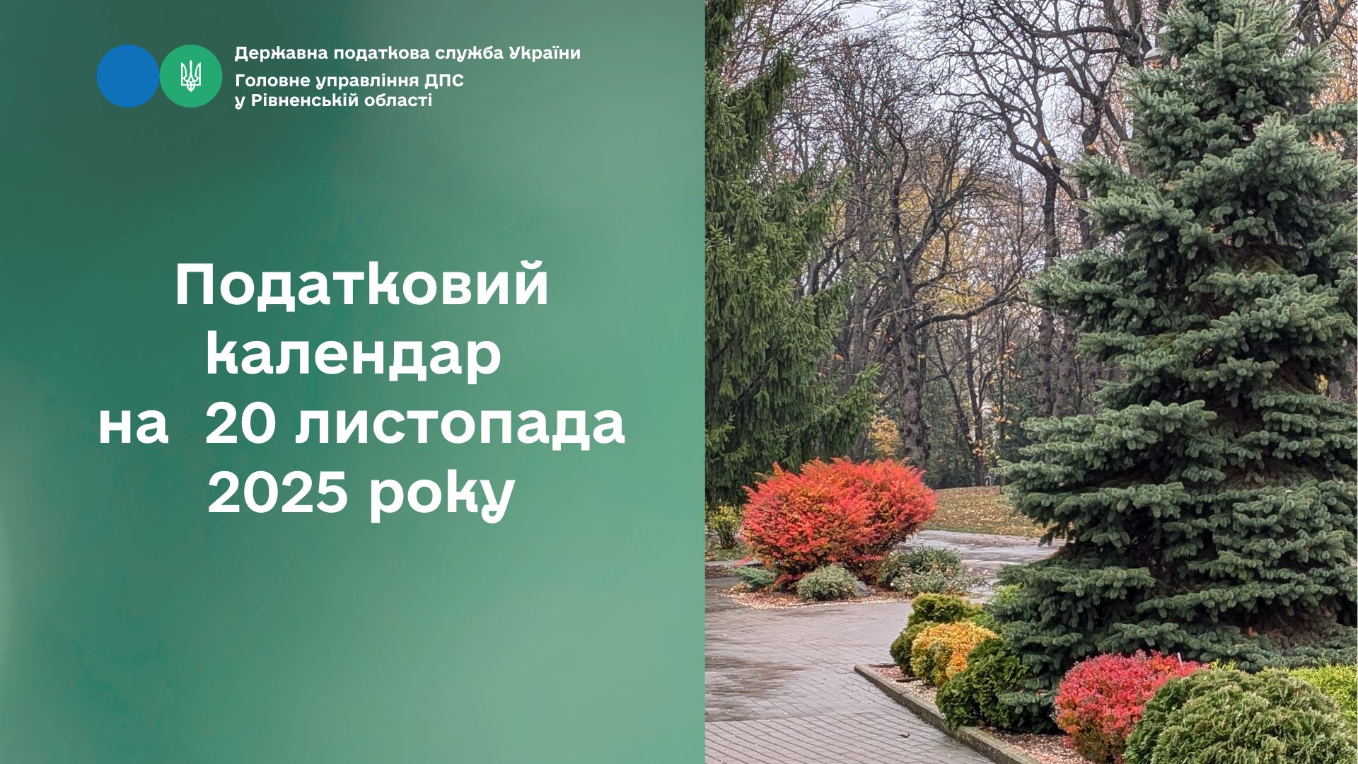 Головне управління ДПС у Рівненській області нагадує про строки сплати податків та подання звітності. Так, 20 листопада 2025 року: