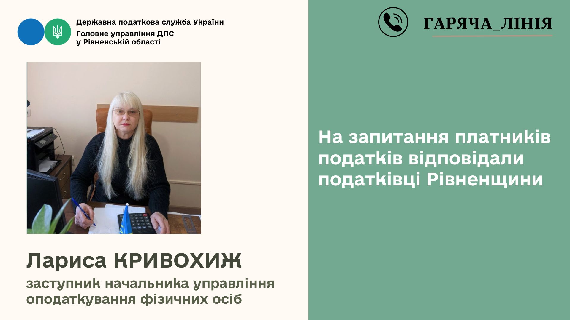 У Головному управлінні ДПС у Рівненській області відбулася чергова «гаряча лінія», присвячена питанням оподаткування та декларування доходів громадян і фізичних осіб – підприємців. Головною метою заходу було надати оперативні роз’яснення платникам та підвищити їх обізнаність щодо правил застосування податкового законодавства.