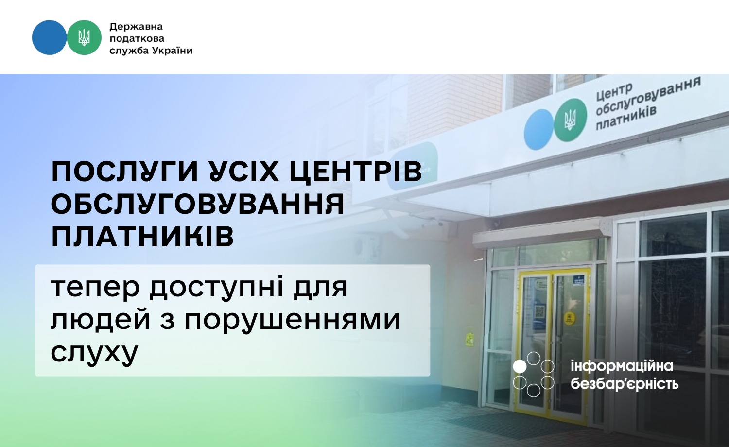 Державна податкова служба України забезпечила доступність 100 % консультацій та послуг, що надаються в Центрах обслуговування платників (ЦОП), для людей з порушеннями слуху.