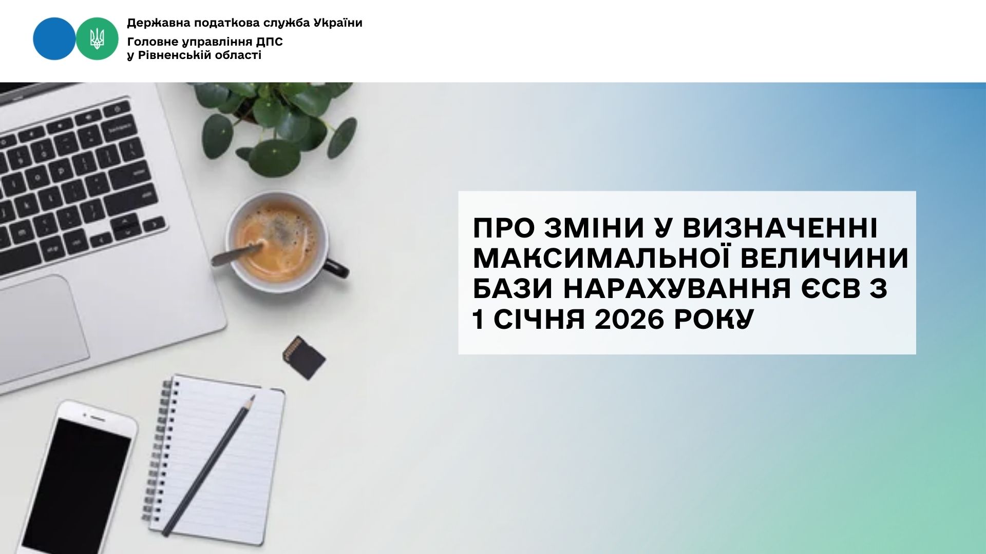 Головне управління ДПС у Рівненській області звертає увагу платників податків, що відповідно до Закону України від 03 грудня 2025 року № 4695-ІX «Про Державний бюджет України на 2026 рік» визначено розмір максимальної величини бази нарахування єдиного внеску, який з 01 січня 2026 року становить:
