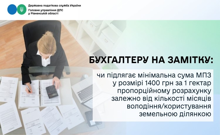 Бухгалтеру на замітку: чи підлягає мінімальна сума МПЗ у розмірі 1400 грн за 1 гектар пропорційному розрахунку залежно від кількості місяців володіння/користування земельною ділянкою