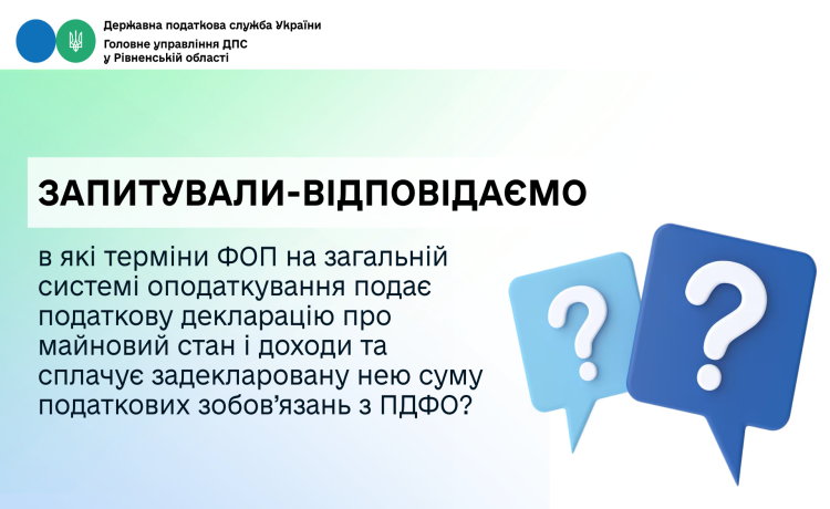 В які терміни ФОП на загальній системі оподаткування подає податкову декларацію про майновий стан і доходи та сплачує задекларовану нею суму податкових зобов’язань з ПДФО?