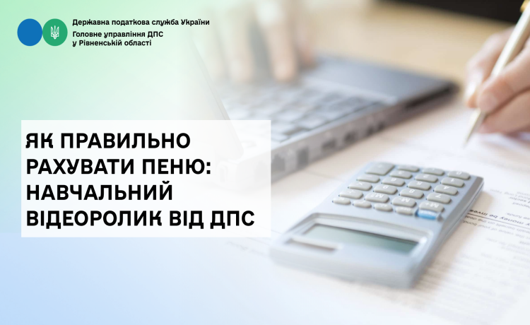Головне управління ДПС у Рівненській області інформує платників податків, що з метою підвищення рівня обізнаності щодо нарахування пені на суми несвоєчасно сплачених грошових зобов’язань на вебпорталі ДПС розміщено навчальний відеоролик «Порядок нарахування пені у разі порушення платниками податків законодавчо встановлених граничних строків сплати грошових зобов’язань, визначених у податковій звітності: визначення дати початку та дати закінчення нарахування пені, алгоритм розрахунку пені».
