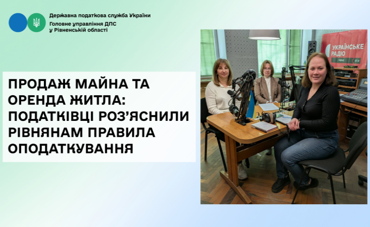 Про податки просто і зрозуміло говорили в ефірі «Українського радіо. Рівне» - фахівці Головного управління ДПС у Рівненській області роз’яснили жителям області особливості оподаткування доходів від продажу майна та здавання житла в оренду.