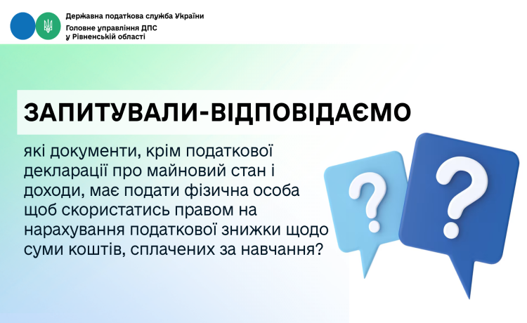 Фізична особа – платник податку на доходи фізичних осіб, яка має право скористатися податковою знижкою щодо суми коштів, сплачених за навчання зобов’язана подати до контролюючого органу разом з податковою декларацією про майновий стан і доходи копії платіжних та розрахункових документів, зокрема, квитанції, фіскальні чеки, прибуткові касові ордери, що ідентифікують надавача послуг і особу, яка звертається за податковою знижкою (їх отримувача), а також копію договору з навчальним закладом, в якому обов’язково повинно бути відображено заклад освіти – надавача послуг і здобувача освіти – отримувача послуг, вартість таких послуг і строк оплати за такі послуги; довідку про отримані у звітному році доходи; документи, які підтверджують ступінь споріднення (у разі компенсації вартості здобуття дошкільної, позашкільної, загальної середньої, професійної (професійно-технічної) та вищої освіти члена сім’ї першого ступеня споріднення); тощо.