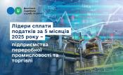 Лідери сплати податків за 5 місяців 2025 року – підприємства переробної промисловості та торгівлі