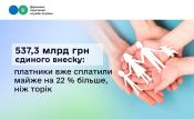 Протягом січня – жовтня 2025 року платники перерахували 537,3 млрд грн єдиного внеску на загальнообов’язкове державне соціальне страхування. Порівняно з аналогічним періодом минулого року – +21,9 %, або на 96,6 млрд грн більше.