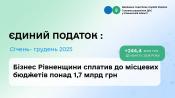 Упродовж січня–грудня 2025 року суб’єкти господарювання Рівненської області, які працюють на спрощеній системі оподаткування, перерахували до місцевих бюджетів 1746,5 млн грн єдиного податку. Це на 16,3% або на 244,4 млн грн більше, ніж за 2024 рік.