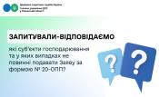 Запитували-відповідаємо: які суб’єкти господарювання та у яких випадках не повинні подавати Заяву за ф. № 20-ОПП?