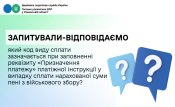 У випадках сплати пені за порушення термінів сплати грошового зобов’язання платником заповнюється код виду сплати «101» – «Сплата суми податків, зборів, платежів, єдиного внеску».
