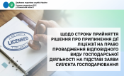 Згідно з частиною четвертою ст. 46 Закону № 3817 рішення про припинення дії ліцензії на право провадження відповідного виду господарської діяльності приймається, зокрема, у разі припинення дії ліцензії за заявою суб’єкта господарювання – не пізніше 20 робочих днів з дня, наступного за днем отримання такої заяви органом ліцензування.