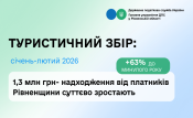За інформацією Головного управління ДПС у Рівненській області, місцеві бюджети Рівненщини у січні–лютому 2025 року отримали 1,3 млн грн туристичного збору. Це на 63% більше, ніж за аналогічний період минулого року.