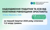 Платники Рівненщини сплатили 11,9 млрд грн податків та ЄСВ за перший квартал 2026 року